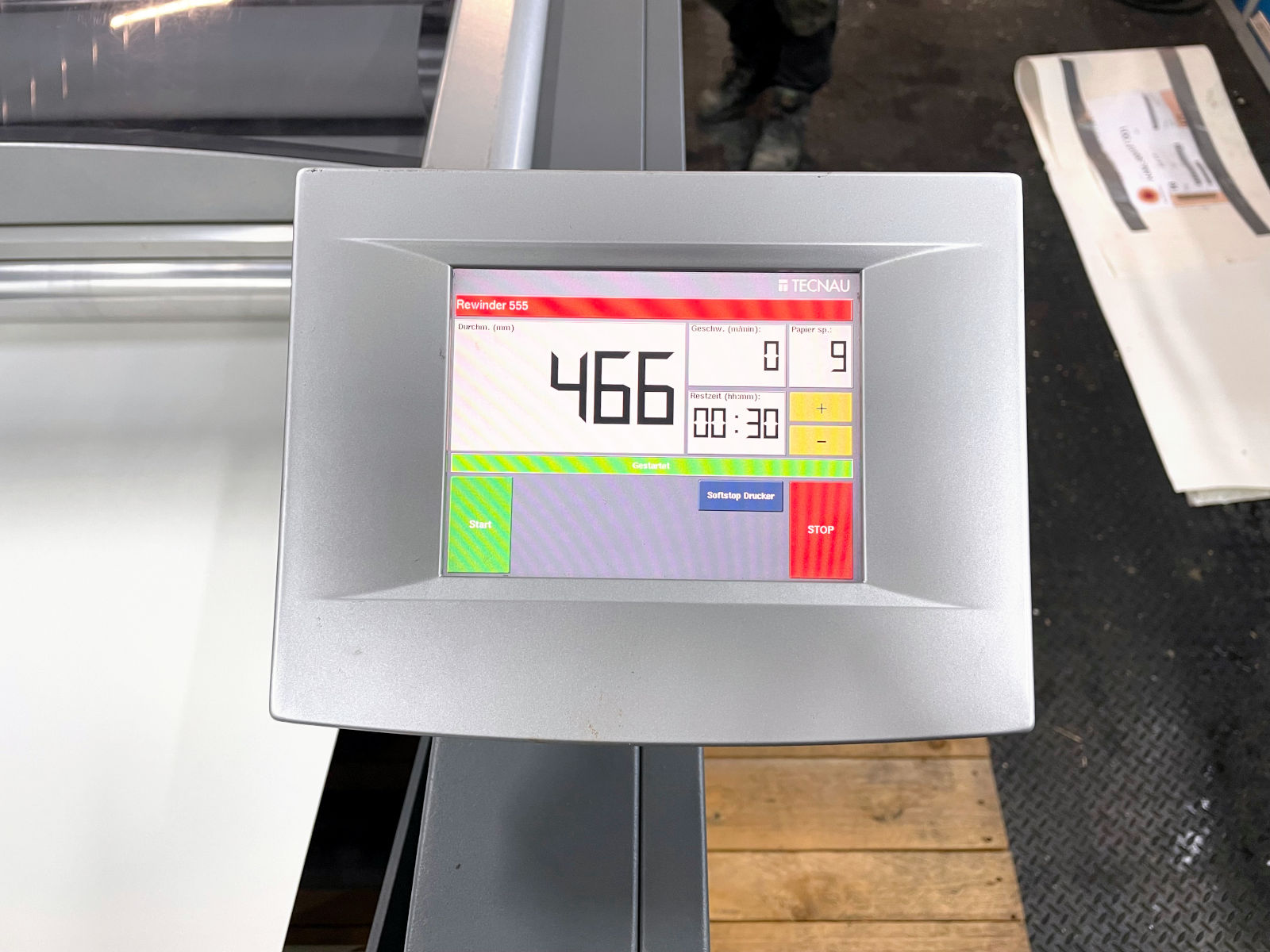 Die Papierwickelmaschine 555 wickelt Papierrollen bis zu einer Länge von 52″ mit Geschwindigkeiten von bis zu 500 Fuß pro Minute auf. Zu den Standardmerkmalen der Papierwickelmaschine 555 gehören ein interaktives Touchscreen-Display und die Kompatibilität mit verschiedenen Kerngrößen.
